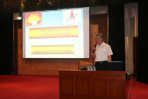 北京青年創(chuàng)業(yè)基地導師趙昶水同志概括地講解了中國共產黨建黨95周年的發(fā)展歷史和輝煌成就;并從中太的發(fā)展歷史與抗震救災和胡錦濤同志視察中太等典型例子講解了中太品牌文化(召之即來,來之能戰(zhàn),戰(zhàn)之能勝)的內涵;從職業(yè)精神、職業(yè)能力、職業(yè)水平、職業(yè)操守到學習力、凝聚力、行動力、創(chuàng)新力的“四個力”,再到落實執(zhí)行力的十個度,即(態(tài)度,喜歡單位,尊重領導,熱愛工作;速度,兩天的事情一天完成;力度,全力以赴;高度,高標準、嚴要求;深度,一深入就具體,一具體就深入;角度,找好工作的切入點;廣度,全面看問題,綜合解決問題;精度,實施精良管理,細節(jié)決定成;尺度,做人講原則,做事講規(guī)則;韌度……)等內容。就如何做好合格黨員,爭當優(yōu)秀共產黨員,在“兩學一做”學習教育活動中起好模范帶頭作用做了一場精彩的演講。
