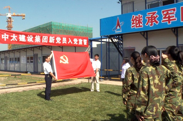 7月3日上午9點,中太建設(shè)集團黨委在安瑞科項目工地舉行新黨員入黨宣誓儀式。在鮮紅的中國共產(chǎn)黨黨旗面前, 16名新黨員整齊排列成行,舉起右手,握拳過肩,莊嚴宣誓,表達了為共產(chǎn)主義事業(yè)奮斗終身的決心。集團黨委副書記鐘崇鶴參加宣誓儀式并講話。他代表集團黨委向全體新黨員表示祝賀,并提出了明確的要求和希望。他希望新黨員同志們不要辜負黨組織的期望,牢記入黨誓言,牢記全心全意為人民服務(wù)的宗旨,發(fā)揚黨的優(yōu)良傳統(tǒng)和作風,在“創(chuàng)先爭優(yōu)”活動中,在各自的工作崗位上,熱愛本職、學習本領(lǐng),努力工作,發(fā)揮好黨員的先鋒模范帶頭作用,為黨的事業(yè)和中太的發(fā)展做出自己新的、更大的貢獻,以更加優(yōu)異的成績,喜迎黨的十八大的勝利召開,無愧于共產(chǎn)黨員的光榮稱號!