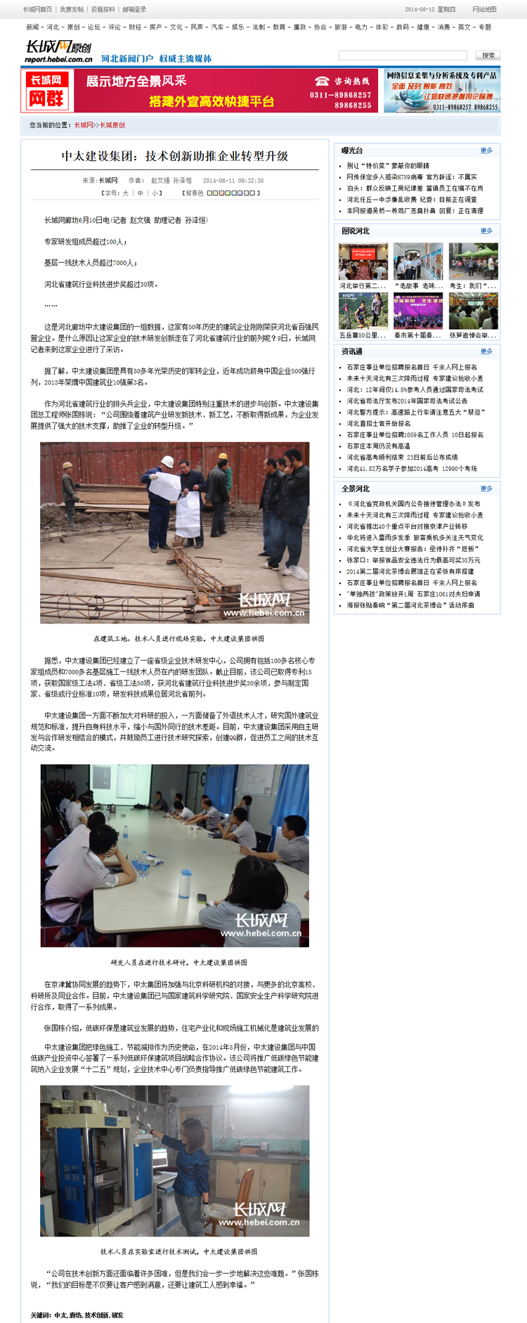 長(zhǎng)城網(wǎng)、中國(guó)網(wǎng)、鳳凰網(wǎng)分別報(bào)道了中太建設(shè)集團(tuán):技術(shù)創(chuàng)新助推企業(yè)轉(zhuǎn)型升級(jí)