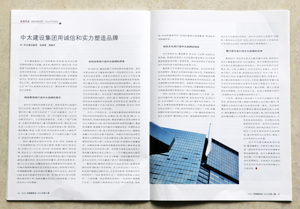 《中國建筑業(yè)》雜志2014年第6期報道了中太建設(shè)集團用誠信和實力塑造品牌