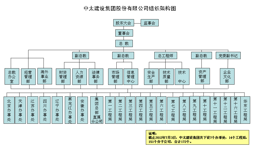 中太建設(shè)集團股份有限公司黨委始建于1985年3月,是由中國人民解放軍基建工程兵352團集體轉(zhuǎn)業(yè)后、經(jīng)中共廊坊市委批準設(shè)立的,名稱為“中國共產(chǎn)黨廊坊市建筑工程總公司委員會”,后更名為“中國共產(chǎn)黨廊坊市城市建筑安裝工程一公司委員會”;2001年9月,更名為“中國共產(chǎn)黨廊坊市中太建筑安裝有限責(zé)任公司委員會”;2005年7月,更名為“中國共產(chǎn)黨中太建設(shè)集團股份有限公司委員會”,建立黨委以來共進行了七次換屆,本屆黨委于2022年9月27日選舉產(chǎn)生,黨委班子成員由7人組成,紀檢班子成員由5人組成。其中設(shè)立黨委書記1人,黨委副書記1人,委員5人;紀委書記1名。集團黨委隸屬于廊坊市國資委黨委,集團黨委下設(shè)基層黨組織13個,共有黨員424人。 截止2024年12月31日,集團黨委隸屬于廊坊市國資委黨委領(lǐng)導(dǎo),共有黨員399名,下設(shè)有12個黨支部。其黨組織機構(gòu)設(shè)置及人員任職情況如下: 中共中太建設(shè)集團股份有限公司委員會: 書記:李文健 副書記:胡衛(wèi)東 委員:門輝、邢旭巍、李曉輝、王連忠、劉然 中共中太建設(shè)集團股份有限公司紀律檢查委員會: 書記:李曉輝 委員:劉啟友、魏翔、段慧思、姚亮 12個黨支部分別是: 中太投資控股集團機關(guān)黨支部,書記劉啟友; 中太建設(shè)集團機關(guān)黨支部,書記李曉輝; 中太中建公司機關(guān)黨支部,書記門輝; 中太物業(yè)公司黨支部,書記付薇; 中太設(shè)備租賃公司黨支部,書記劉洪庚; 中太混凝土公司黨支部,書記姚亮; 老年康復(fù)醫(yī)院黨支部,書記段慧思; 中太(廊坊)勞務(wù)公司黨支部,書記張飛; 中太集團勞務(wù)人員黨支部,書記孫萬超; 中太退休人員第一黨支部,書記鄧啟軍; 中太退休人員第二黨支部,書記趙際榮; 中太退休人員第三黨支部,書記段慧思。 |