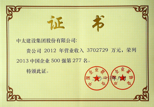 中國企業(yè)500強證書