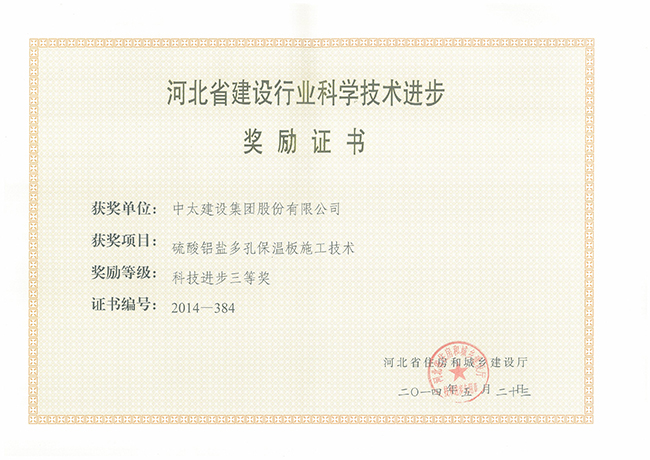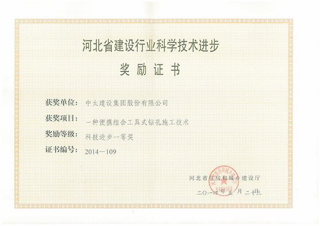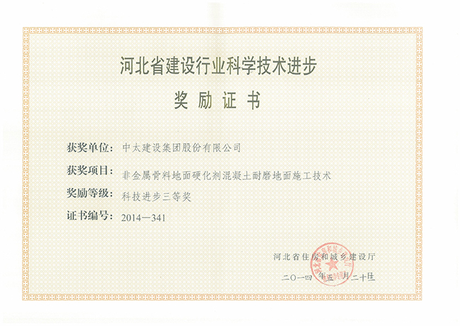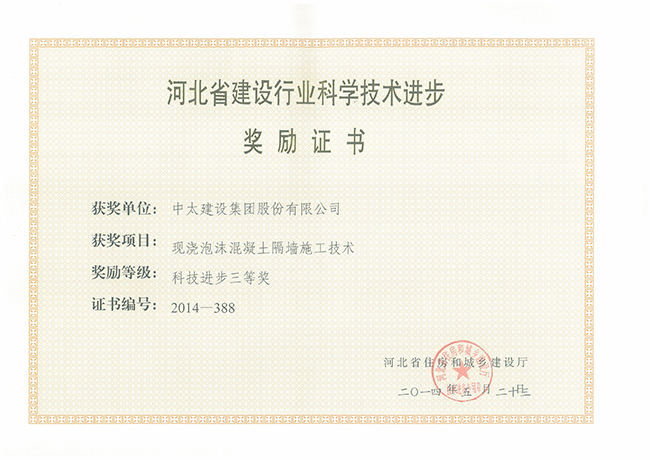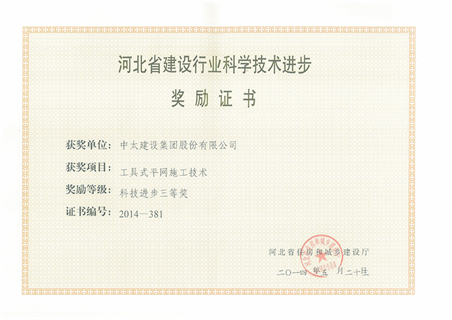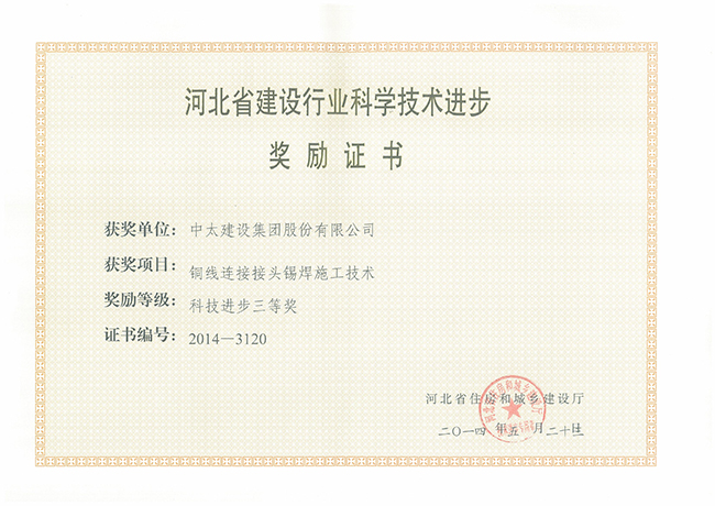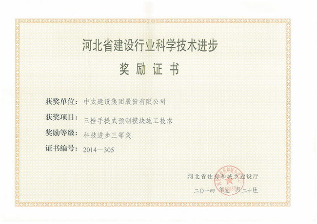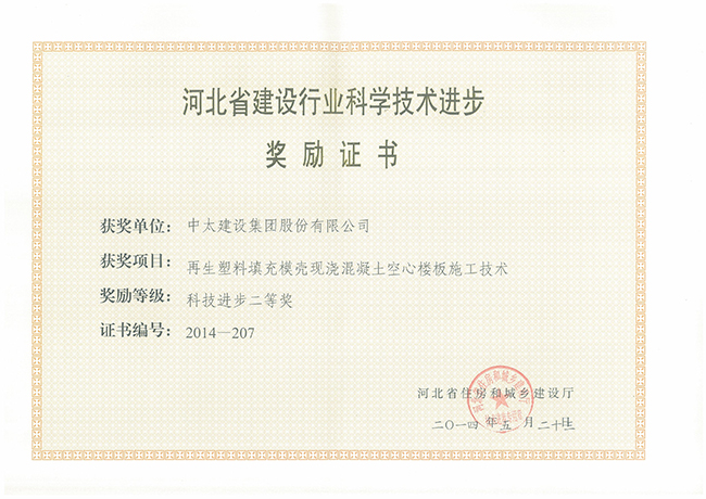 2014年河北省建設行業(yè)科學技術(shù)進步獎勵證書匯總