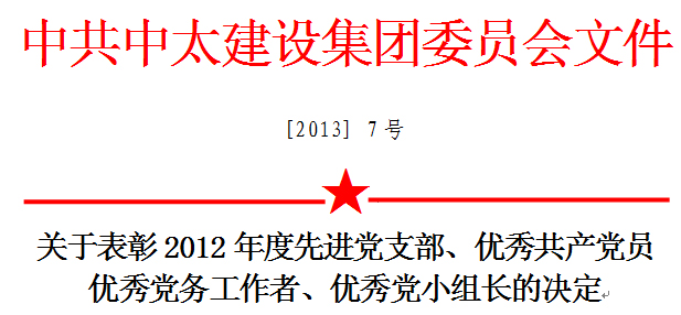 2012年度,集團(tuán)公司各級黨組織堅(jiān)持以科學(xué)發(fā)展觀為指導(dǎo),按照集團(tuán)黨委的總體要求,緊緊圍繞“一園兩翼,多元發(fā)展,實(shí)現(xiàn)中太產(chǎn)業(yè)結(jié)構(gòu)轉(zhuǎn)型升級”和“三個(gè)跨越、四個(gè)一體化”的戰(zhàn)略發(fā)展目標(biāo),堅(jiān)持“打中太牌,走全國路,謀海外財(cái)”的發(fā)展方針,深入貫徹落實(shí)黨的十八大精神,結(jié)合黨委開展的“三抓三帶”活動,團(tuán)結(jié)帶領(lǐng)廣大黨員積極創(chuàng)先爭優(yōu),服務(wù)中心工作,為推動企業(yè)持續(xù)、健康、和諧發(fā)展發(fā)揮了黨組織的戰(zhàn)斗堡壘作用和政治保障作用;廣大黨員在各自的崗位上勤奮工作、勇挑重?fù)?dān),發(fā)揮了黨員的模范帶頭作用,涌現(xiàn)出了一批業(yè)績突出的先進(jìn)集體和優(yōu)秀個(gè)人。為表彰先進(jìn),樹立典型,充分發(fā)揮榜樣的示范作用,激勵黨員和員工見賢思齊,全面推動集團(tuán)公司科學(xué)健康發(fā)展,在紀(jì)念中國共產(chǎn)黨建黨92周年之際,集團(tuán)黨委決定,對混凝土公司黨支部等8個(gè)“先進(jìn)黨支部”、林維生等39名“優(yōu)秀共產(chǎn)黨員”、楊召國等9名“優(yōu)秀黨務(wù)工作者”、閆建薇等10名“優(yōu)秀黨小組長”予以通報(bào)表彰。