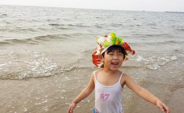 拍了照片后,突然讓我感覺像文清同學(xué)媽媽去澳門時(shí)住在海景房拍的海景照片! 看完海景就開始了匆忙的換泳衣準(zhǔn)備下海,海景公寓的好處就是出來小區(qū)走上自己的棧道就是小區(qū)的私家海灘,非常干凈。近距離的接觸大海,吹著涼爽的風(fēng)(天氣多云,溫度在29度),讓我們一行幾個(gè)馬上開懷起來,每個(gè)人的興奮在臉上流露。孩子是最興奮的,跑到海邊上,任憑海浪一層層的打過來(這天風(fēng)并不大),孩子說:“媽媽,你看大海碰我了!”竟然用起了擬人句,把大海打過來的浪花比作在“碰”,這字用的多么美妙啊!我一邊欣賞著美景一遍在咂摸著這話,贊嘆著孩子的天真和用詞之妙。我們真的跳入大海浸泡的時(shí)候,舅舅在照顧著她,突然一個(gè)浪打在了孩子的頭上,孩子嚷著:“我要離開大海了”,這是在身邊的舅舅轉(zhuǎn)告我的,我在想孩子真是長大了,會(huì)表達(dá)很多個(gè)人的感情了,“啊,我要離開大海了”是一個(gè)陳述句,但是好像是表達(dá)著一種不舍得離開但是有不得已的感情,她很想在大海里再待一會(huì),但是因?yàn)樗焕嘶ù驖窳祟^發(fā),依她個(gè)人的膽量可能害怕了,所以說了句“啊,我要離開大海了”,孩子的成長讓我們自覺不自覺真切感受到了。然后她自己在海灘玩沙子,挖了大大的沙坑,每當(dāng)海浪沖過來的時(shí)候,總是興奮的說:“媽媽大海幫我大忙了,還給其他家人也興奮的嚷嚷,大?墒菐土舜竺α恕。當(dāng)我問她到底幫了什么忙時(shí),她說:“大海給我的沙坑送來了水啊”(估計(jì)是她不用拿著自己的小碗去海邊舀水了)。我感嘆著女兒的天真浪漫和快樂興奮,內(nèi)心在想:帶著孩子出來玩玩是多么對(duì)的選擇,大自然的風(fēng)光的確是能刺激人的靈感,說了那么多令我平時(shí)聽不到的妙字妙語。這趟短途旅行意義非凡!