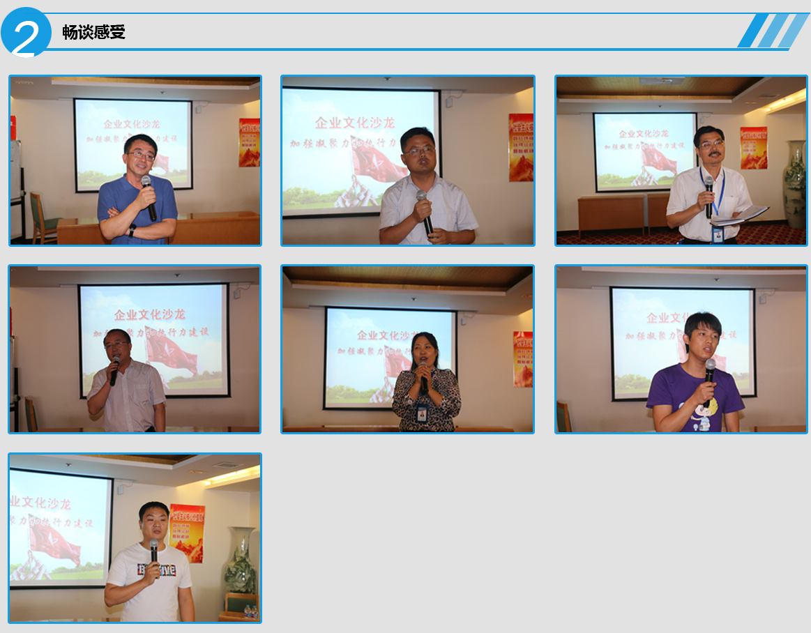 第二部分為領(lǐng)導(dǎo)暢談文化心得。一改傳統(tǒng)會議嚴肅形式,通過面對面交流拉近企業(yè)領(lǐng)導(dǎo)者和員工間的距離,通過輕松、自由的形式讓向全體員工企業(yè)文化魅力。